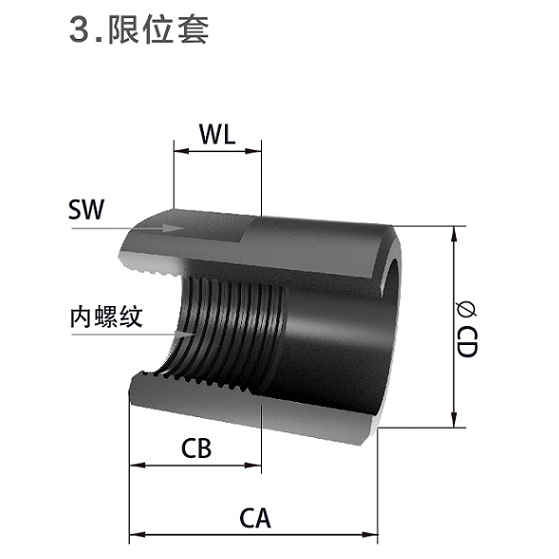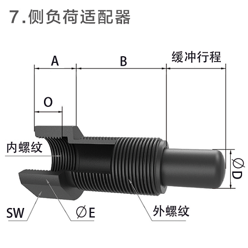 注意:只能用于不帶消音冒的緩沖器,承受較大側負荷角度小于30° |